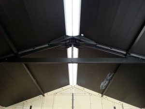 The eight skylights seem excessive until you're trying to find a spark plug at dusk. Natural light transforms a dark box into usable space. The placement—four per side along the roofline—eliminates dark corners where spiders establish civilizations. Combined with the door windows, you get actual visibility without electricity.